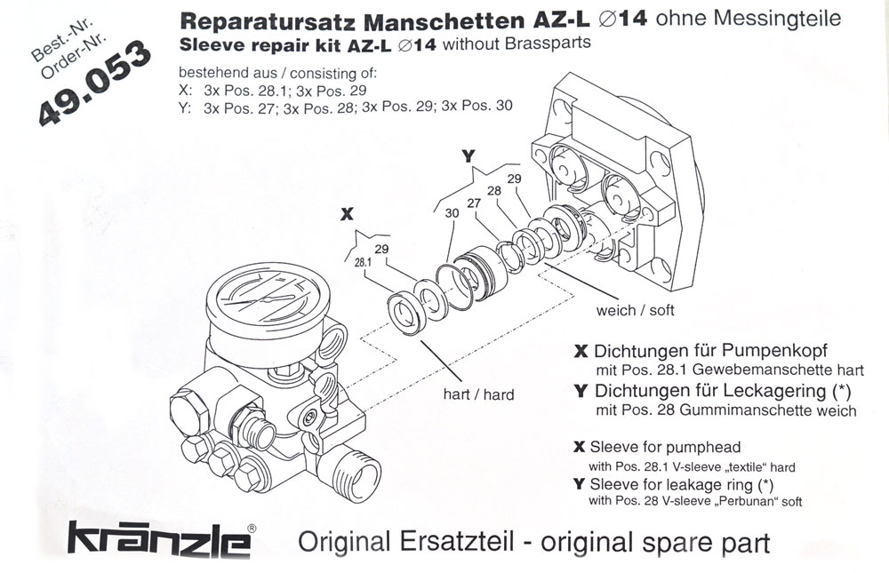 Reparatursatz Manschetten für AZ-Pumpen von Kränzle